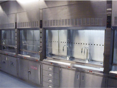 (1)內襯板、導流板:采用厚度1.2mm不銹鋼鋼板制作,分層(上、中、下),并使柜內無排風死角,各種比重氣體均能順利排出柜外,三塊導流板使處于不同高度空間有害氣體以控制濃度小于0.5ML/M3的性能指標分別從不同段區(qū)排出,操作口表面風速0.3-0.5M/S的速度將通風柜中氣體排出,確無任何殘留氣體存在。排風量1000-1600M3/N,噪聲要小。